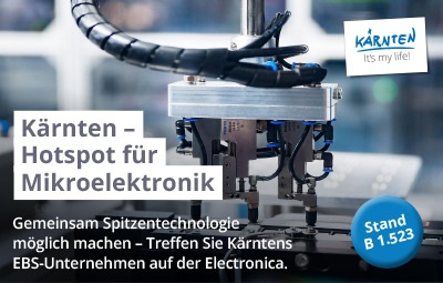Kärnten bietet Mikroelektronik-Unternehmen also vielfältige Möglichkeiten für einen erfolgreichen Einstieg und Partnerschaften vor Ort. Für Interessenten empfiehlt sich ein Besuch auf der diesjährigen Electronica im Trade Forum Center der Messe München. Vom 15. bis 19. November kann man sich am Gemeinschaftsstand des der Wirtschaftskammer Kärnten selbst ein Bild machen und Kontakte knüpfen.